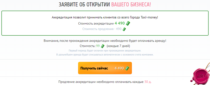 Сразу после строительства Фабрика бонусов может оказывать услуги только для Ваших такси. На вкладке «Лицензия» на странице Вашей Фабрики приобретите лицензию, которая позволит Вам обслуживать любые такси в городе. Для этого необходимо пополнить основной счёт Фабрики бонусов посредством прямой оплаты.