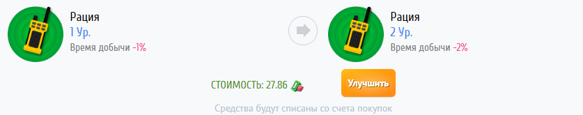 У каждого апгрейда есть 3 уровня. Чем выше уровень апгрейда, тем сильнее его эффект. Чтобы улучить апгрейд, нажмите на кнопку «Улучшить» под интересующим Вас апгрейдом.