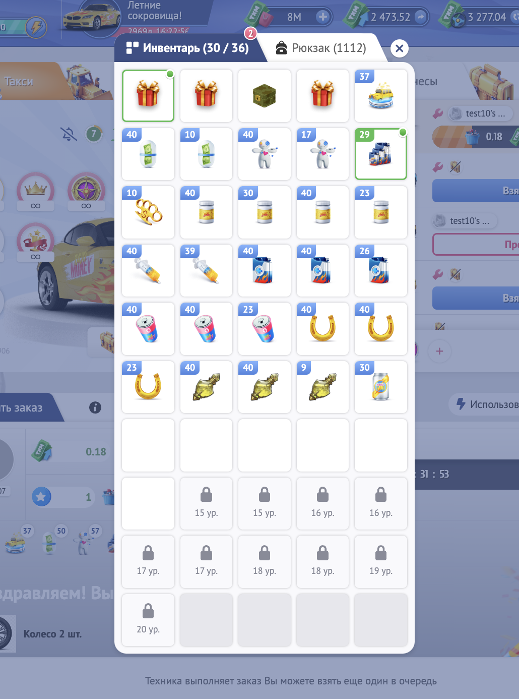 Все предметы, которые Вы получаете в игре отправляются в инвентарь. Например, получив такси в подарок за депозит, Вы увидите его в инвентаре