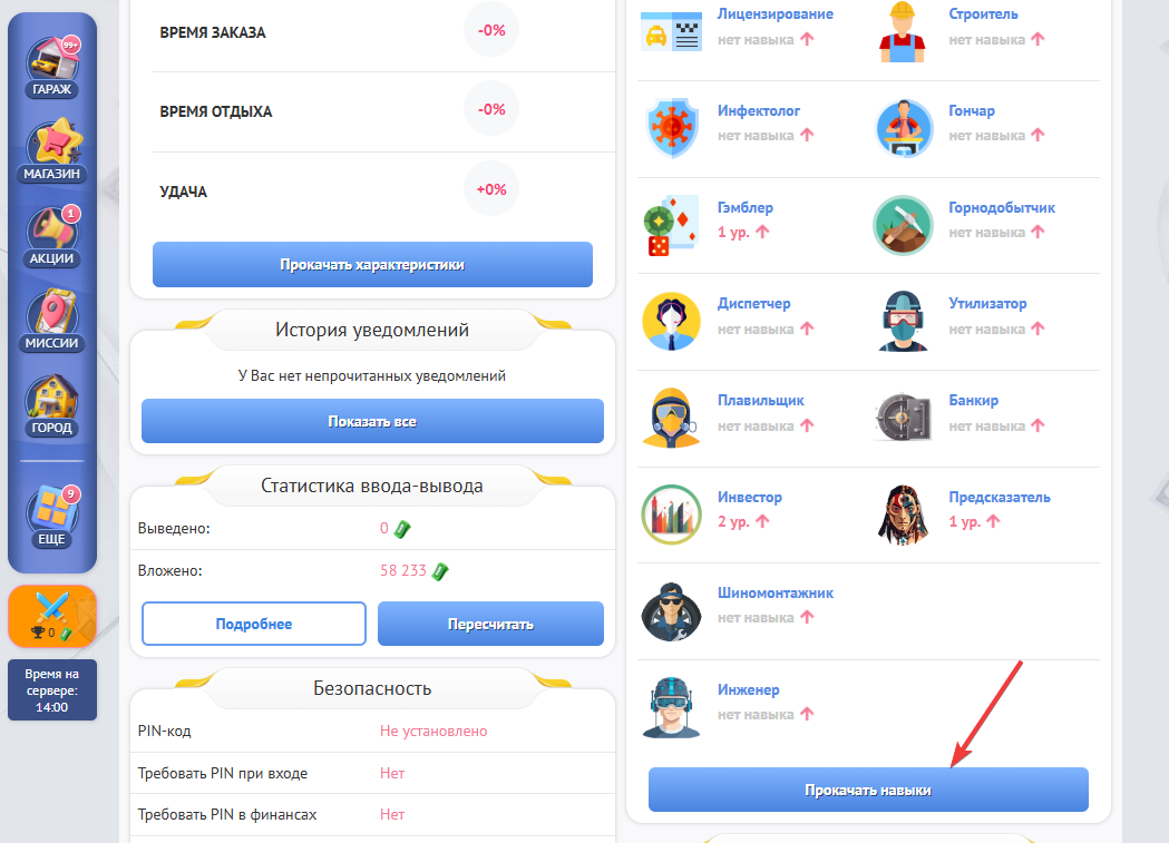 Нажать “Прокачать навыки”
