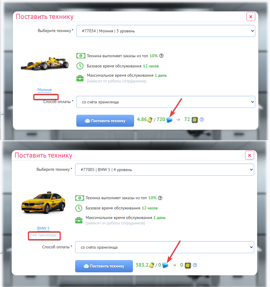 Каждый клик сотрудника добавляет 15 минут, всего возможно 48 кликов на одну технику.