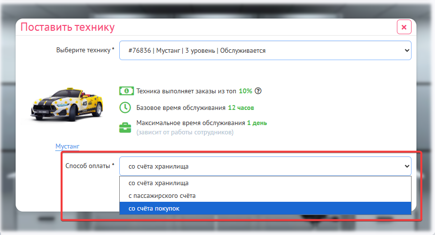 Вне зависимости от счета оплаты Вы будете получать прибыль исходя из того, трудоустроена Ваша техника или нет. Например, если такси трудоустроено, то оно будет выполнять Рабочие/Элитные заказы/Поиски , привозя прибыль на счет компании. Если такси не трудоустроено, то она будет выполнять Халтурные/Конкурсные заказы/Поиски, привозя прибыль на Ваш “Счет вывода”